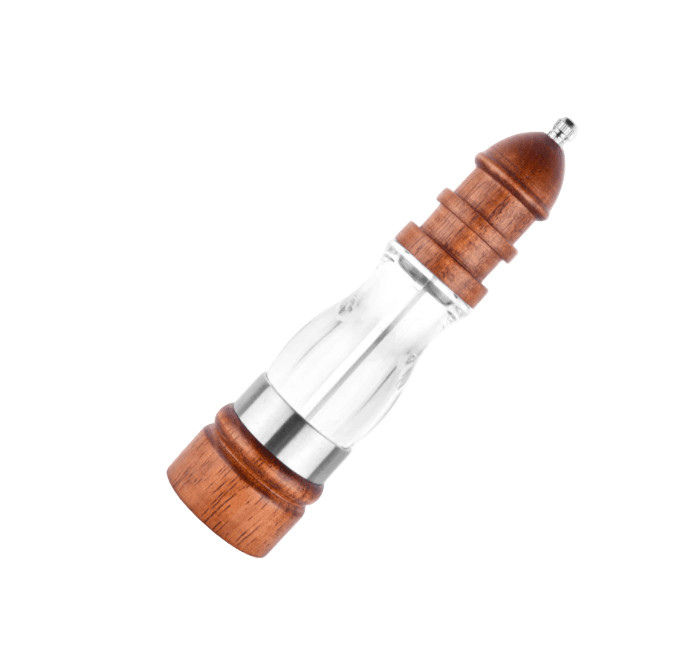Med en top af naturligt træ og et slidstærkt akrylhus, tilbyder denne mølle en præcis slibning, der komplementerer enhver borddækning. Den justerbare formalingsgrad gør det nemt at skifte mellem groft og fint, hvilket gør den ideel til både hjemmekokke og madentusiaster.