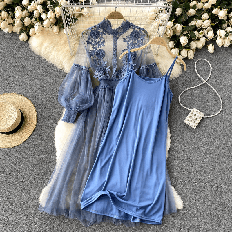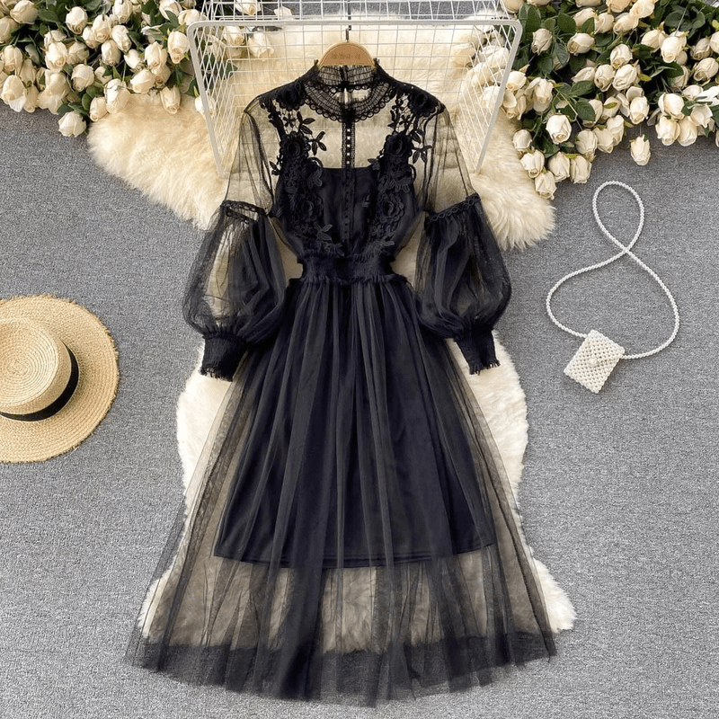 Kvinders Aftenkjole med Blomsterdetaljer og Høj Krave 0