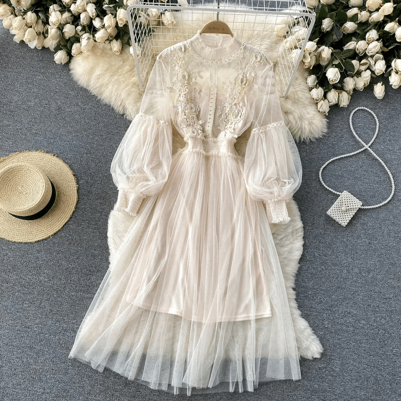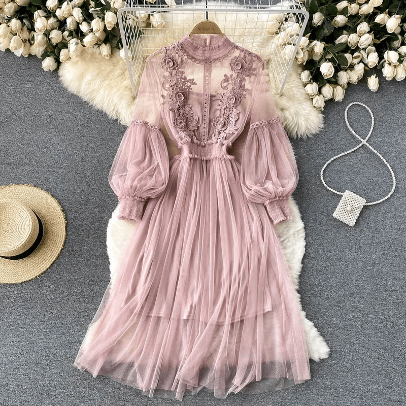 Kvinders Aftenkjole med Blomsterdetaljer og Høj Krave 6