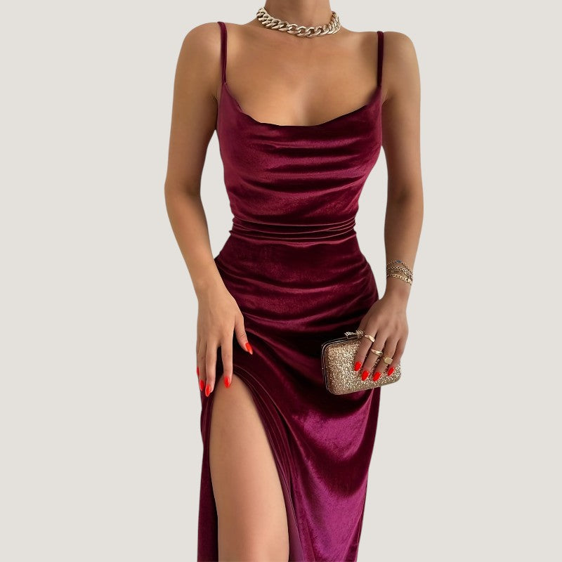 Kvinders Aftenkjole med Fald og Rynker