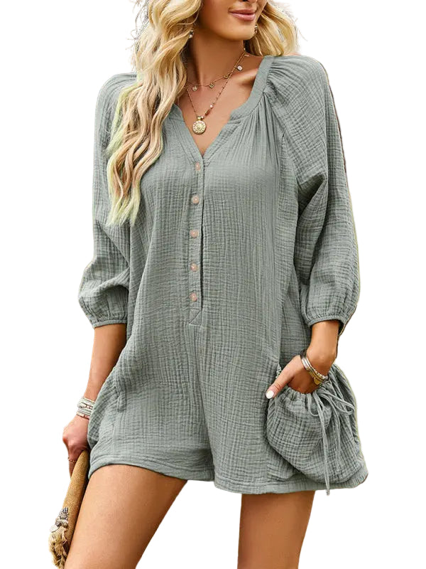 Kvinders Buksedragt Løs Ensfarvet Bomuld og Linned 4