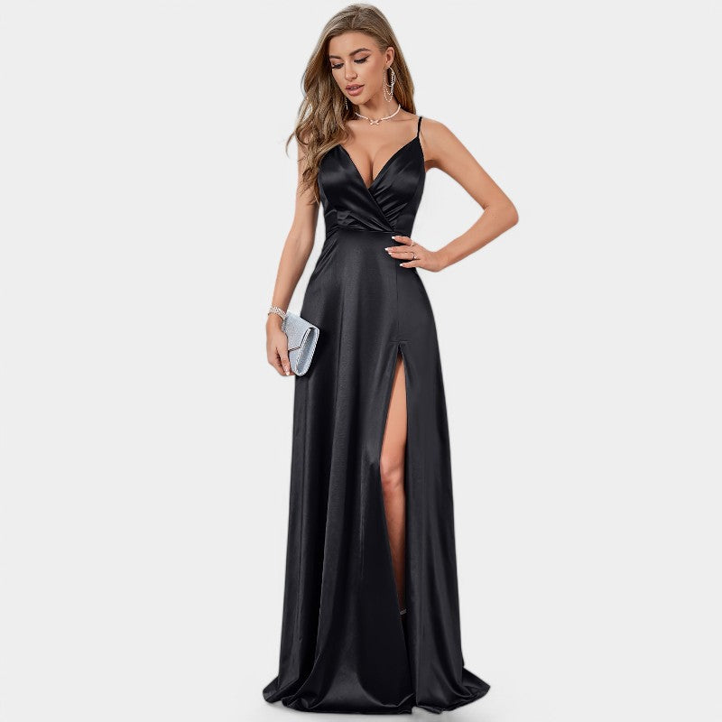 Kvinders Formelle Kjole Med V-udskæring Satin