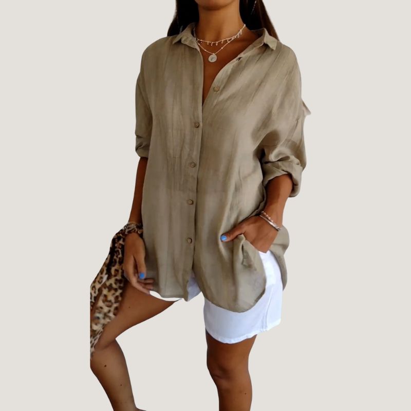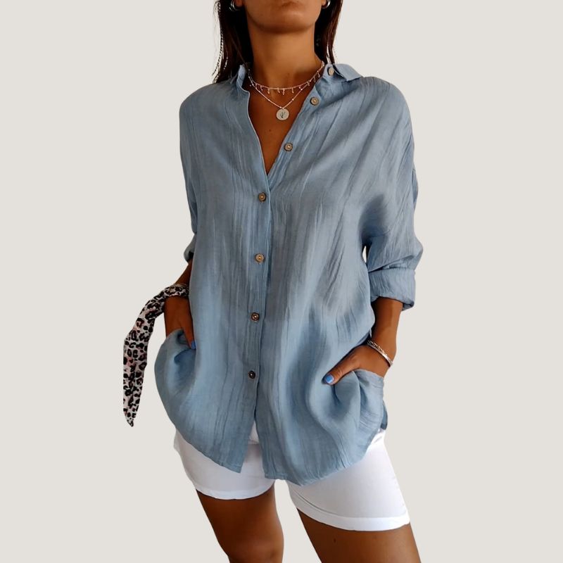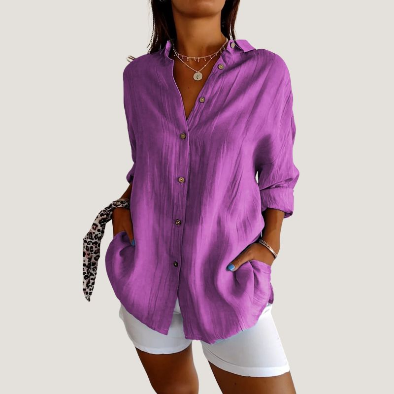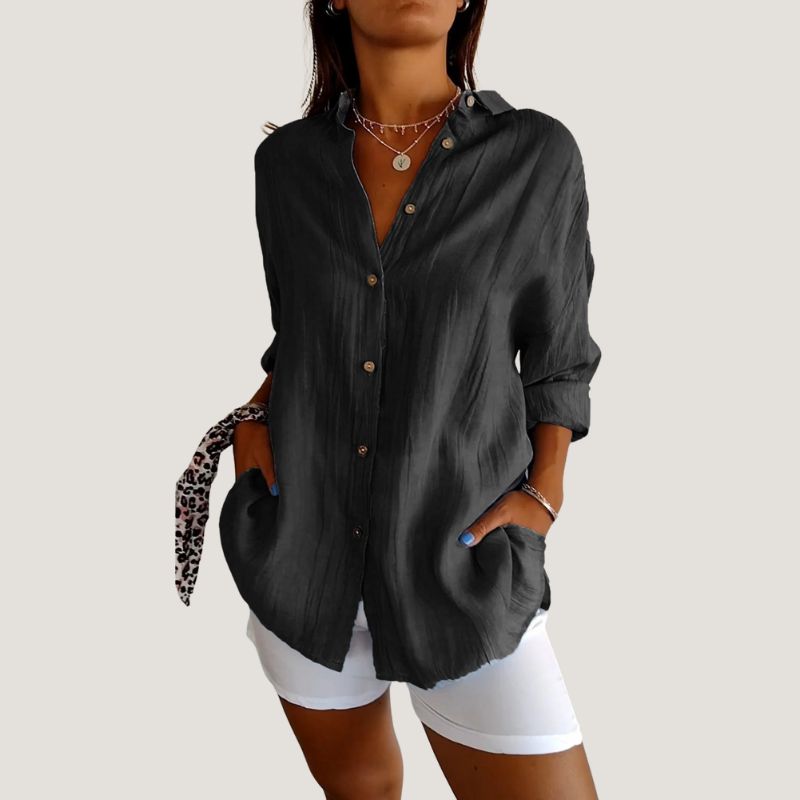 Oplev vores kvinders langærmede skjorte, der kombinerer stil og komfort. Dette tidløse stykke tøj er ideelt til at løfte dine outfits, uanset om det er til daglig brug eller mere formelle lejligheder.