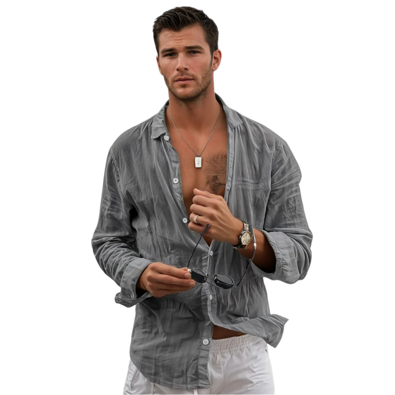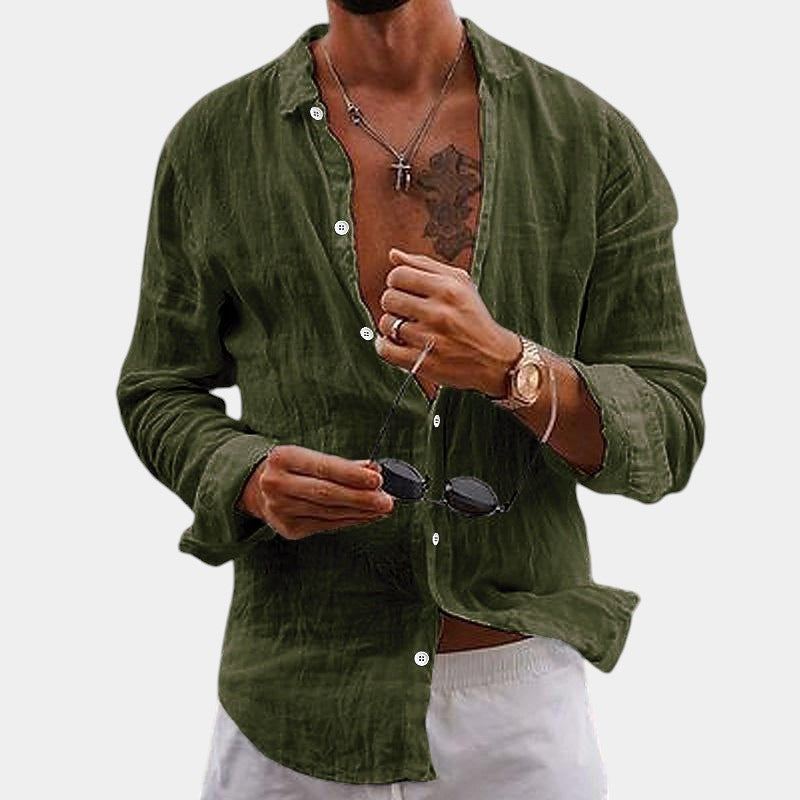 Herre Coton-Lin Skjorte med Lange Ærmer