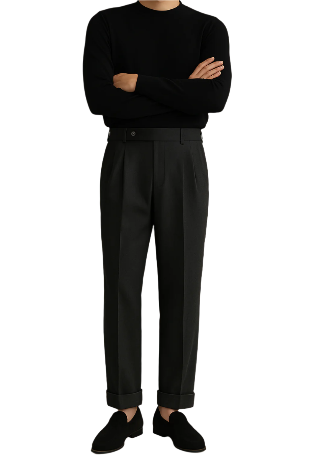 Bukserne har en høj talje og en stilfuld opkrøllede kant, hvilket gør dem perfekte til både formelle og afslappede anledninger.