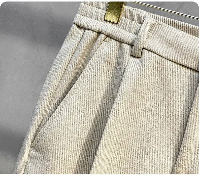 Disse bukser er ideelle til formelle begivenheder, arbejdsdage eller festlige lejligheder og har en skarp silhuet og langvarig komfort. Uldblandingen giver et naturligt fald og varme, hvilket gør dem til et raffineret valg til køligere årstider eller professionelle omgivelser hele dagen.