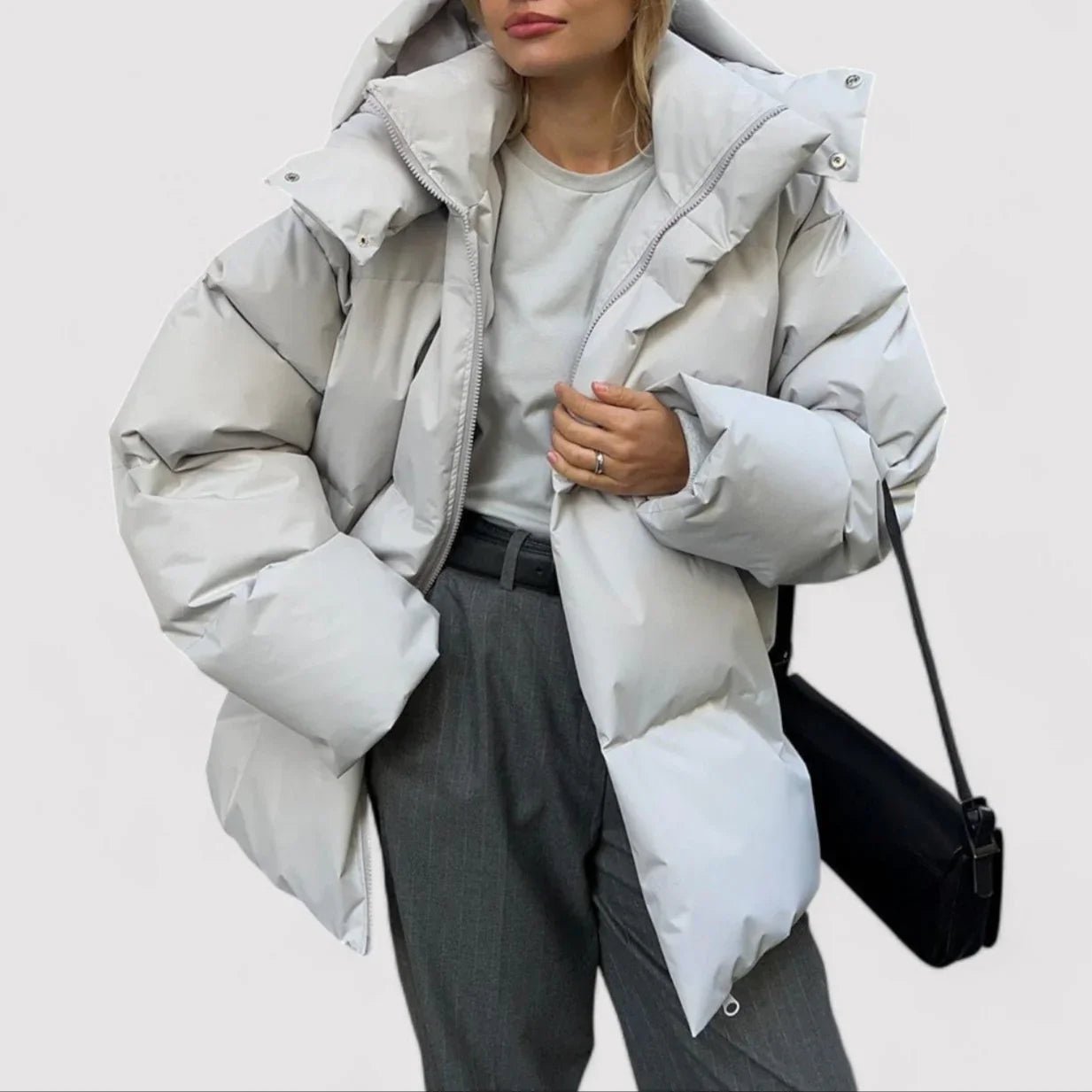 Hold dig varm og stilfuld denne vinter med vores overdimensionerede pufferjakke. Omfavn kulden med selvtillid i denne jakke, der er designet til den moderne kvinde.