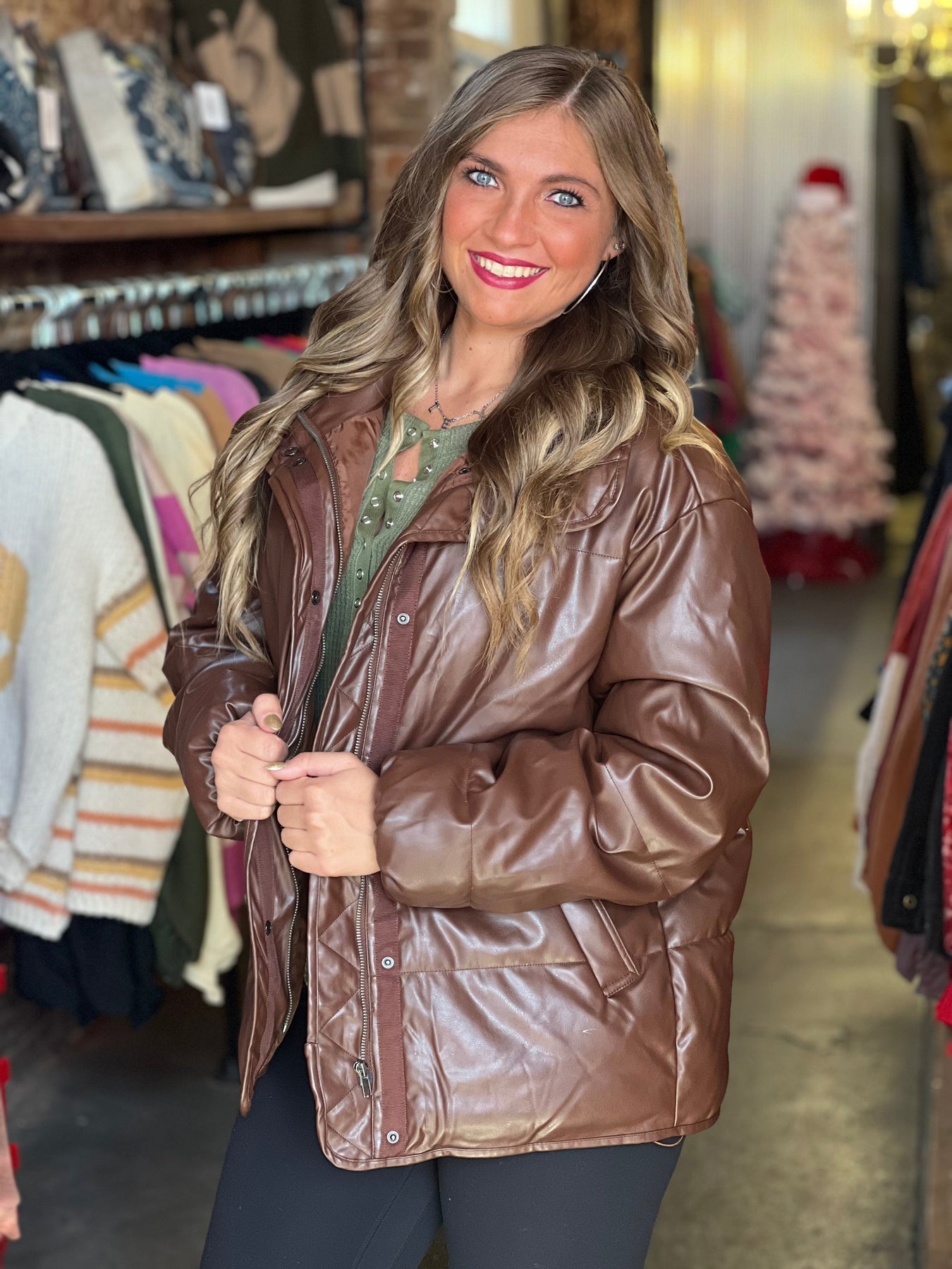 Jakken er designet med fokus på både funktionalitet og mode, hvilket gør den ideel til både hverdag og særlige lejligheder. Det bløde lædermateriale tilføjer et luksuriøst præg, mens puffer-stilen sikrer, at du holder dig varm.