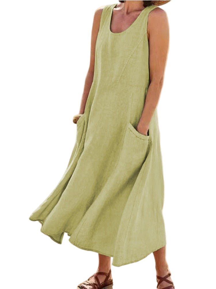 Oplev komfort og stil med denne kjole, der er perfekt til varme sommerdage. Den lette konstruktion giver en behagelig følelse, uanset hvor du går.
