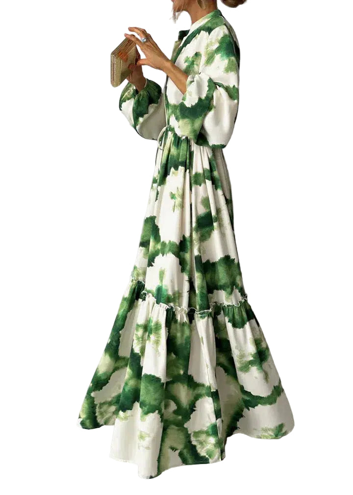 Oplev en følelse af elegance med denne maxi kjole, der er designet til at fremhæve din stil. Den flatterende V-hals og de graciøse lange ærmer giver et smukt draperet look, der skaber en sofistikeret silhuet.